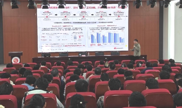 徐帅从产业发展、就业趋势、能力要求和成长路径四个维度展开深入分析。在产业发展方面,他介绍了当前大模型技术的演进趋势及其对各行业的变革影响;在就业趋势部分,重点讲解了大模型相关岗位的增长态势及企业对人才能力要求的变化;关于“学什么”,他详细剖析了自然语言处理、计算机视觉、生成式应用开发等核心领域的技术要点;针对“如何实现”,徐帅分享了华为全栈课程体系的设计理念,并推荐了OpenI启智平台和ModelArts等实训资源,帮助同学们构建系统的学习路径。徐帅鼓励同学们把握大学生涯中的最后一年时间,学习并掌握大模型知识,明确自身就业目标,找准方向,为未来就业创业夯实基础。