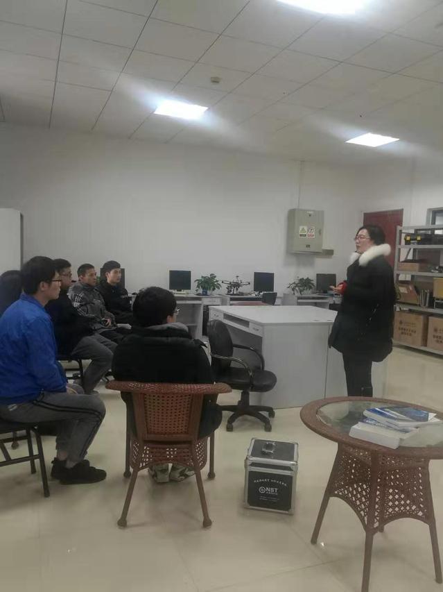 开学初,有机器人实验室负责人于老师对学生进行安全培训,主要是针对灭火器的使用: