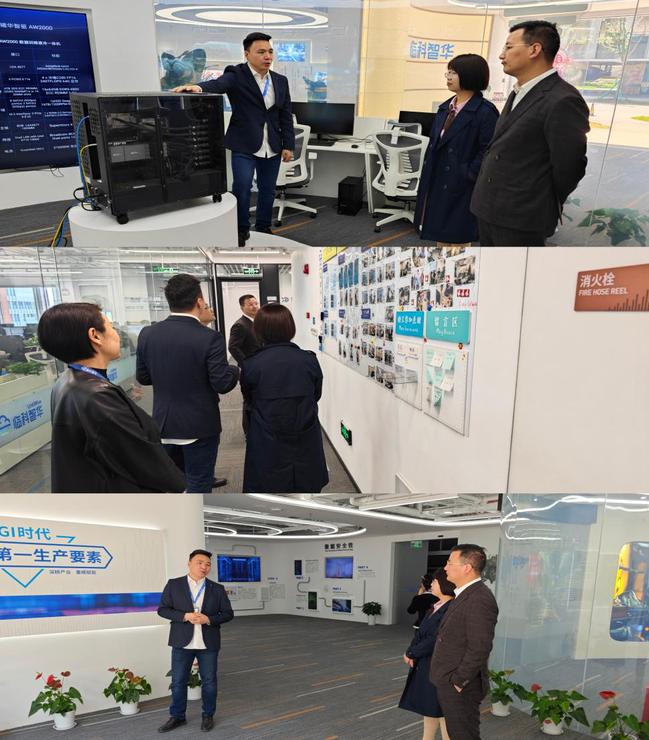 临科智华是一家以技术为驱动的企业数据智能解决方案服务商,自成立以来,在数据处理、分析和应用等多个领域积累了丰富经验,为数据跨境服务提供全方位的解决方案。在交流座谈前,李科带领大家参观了企业展厅与研发实验室,深入了解企业的核心技术和业务流程。