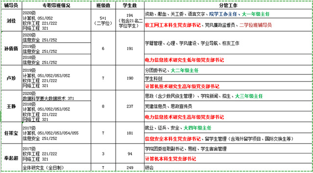 3003新葡的京集团辅导员分工表(2020-2021学年第1学期)