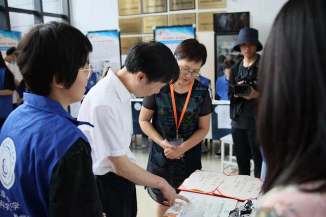 校党委副书记翁培奋、校办主任李兆鹏、学生处副处长(主持工作)陈姗姗、研工部副部长陈静、研究生院副院长于会群等走访学院迎新现场,详细了解研究生和本科生的报到情况,对学院迎新工作表示重视与关心。翁书记对新同学的到来表示热烈欢迎,同时充分肯定迎新工作人员甘于奉献的敬业精神和热情周到的服务态度,并希望大家继续强化服务意识,做好服务保障。学院党委书记魏建华、党委副书记余南飞和副院长李晋国亲切慰问现场工作人员,对迎新工作人员的付出表示感谢,他们对学院别具一格的科创机器人展示及热情周到的迎新志愿工作表示赞许。