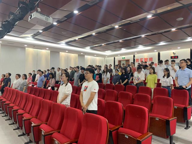 上半场开学典礼以全体师生起立奏唱国歌拉开帷幕。副院长李晋国代表广大师生对新生的到来表示热烈欢迎。院长温蜜向新同学提出三点要求,她希望研究生们能够大胆尝试、独立思考,培养坚毅执着敢于奋斗的优良品质,鼓励研究生们走出舒适区,吸收多元的知识,建立丰富的思维体系。副院长李晋国详细介绍了研究生教学科研情况,希望每位同学可以规划好时间;导师代表张凯提出做学问前先做人,培养良好的道德品质,志存高远,脚踏实地。老生代表靳文星建议新生能充分利用资源,了解学科的科研动态,多参加各类竞赛,丰富自己的研究生生活;新生代表何思颖分享了自己的本科经历和感悟,也针对研究生的生涯规划问题,向大家分享了自己的思考。随后党委书记魏建华希望研究生们能做到爱校爱党爱国,真人真心真诚,树立正确的人生观、价值观、世界观,养成尊师重道的良好品德,明辨是非,认真学习,提高自己的科研科创能力。最后党委副书记余南飞希望同学们学会尊重,学会适应,明确规则,科学规划,树立坚定的理想信念。