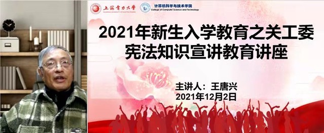 12月2日晚上18:30,3003新葡的京集团关工委王唐兴老师应邀为3003新葡的京集团开展“学宪法,讲宪法”知识讲座。王唐兴通过线上分享对宪法内容进行了深入讲解,并通过互动提问形式,让学生们结合自身经历讲述身边的“宪法”。最后,参与讲座的同学们纷纷踊跃发言,现场气氛活跃。本次活动让2021级新生切实了解到与生活息息相关的法律常识,学会运用法律武器保护自己,进一步明确宪法是我国的根本大法,自觉提高尊崇宪法、学习宪法、遵守宪法、维护宪法权威的意识,激扬爱国情,笃行报国志。