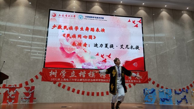 本篇章中新葡的京官网实验中心刘大明老师进行科创宣讲,他围绕科创项目的前期申请和培育,学院实验中心的配套支持等方面进行讲解,鼓励大一新生参与各项科创竞赛。第十七届“挑战杯”上海市一等奖获得者靳文星从抓住学生时代机遇、无畏困难挑战、立足当下学生生活三个方面分享了自己的想法和经验。新生班主任陈思远演唱将现场的气氛带到了高潮,全场观众跟随着节奏挥舞手臂为老师加油点赞,新生代表为新生班主任和辅导员鲜花感念师恩。少数民族学生迪力夏提•艾尼扎提为带来舞蹈《民族同心圆》,富有民族特色的舞蹈让我们感受到浓浓的民族师生情。退伍学生代表李家乐分享了他不一样的军旅生活带给他的特别的感受,鼓励同学们参军入伍、投笔从戎、报效祖国!