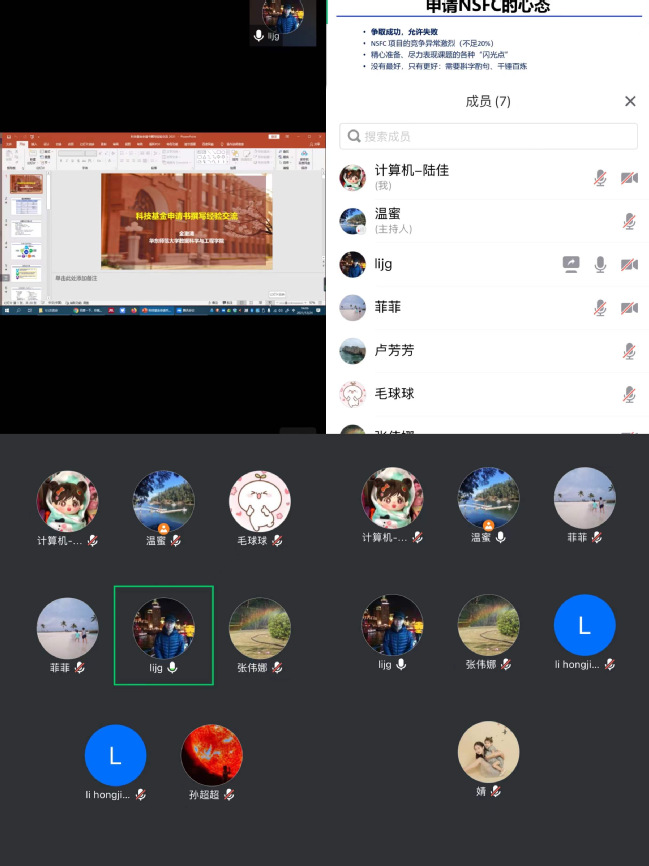 金澈清教授首先介绍了自己申请国家自然科学基金的经历,详细分析了自身基金申请过程中经历的心态、成功与失败的原因,然后结合自身经验讲解了申请书的整体结构,从立项依据(为什么)、研究内容(做什么)、科学问题(是什么)、研究方案(怎么做)、预期成果和创新特色(做成什么样)、研究和工作基础(为什么是我)等方面具体介绍了基金申请各个步骤中需要注意的问题,要做到未雨绸缪精心准备、通盘考虑缜密选题、标新立异务实创新、精心设计清晰铺陈。会后,学院青年教师积极向金教授请教,线下、线上讨论气氛热烈。