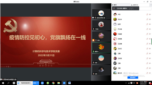 会上,学院党委书记魏建华以《疫情防控见初心,党旗飘扬在一线》为主题作报告。首先,魏建华带领全院教师学习了《中共中央政治局常务委员会会议分析新冠肺炎疫情形势部署从严抓好疫情防控工作》重要内容、《关于进一步发挥党的政治优势组织优势,扛起特殊责任拿出特殊担当,全力打赢疫情防控阻击战的工作提示》《3003新葡的京集团教职工考勤请假制度》等内容。其次,她介绍了2022年学院党建重点工作,指出学院党委将会根据“问题导向、需求导向、效果导向”,以“一个中心”为目标,“两个保障”为基础,“三大团队”为支撑,聚焦“六大体系”为学院改革发展保驾护航。重点强调了学院在党建工作与中心工作深度融合、绩效改革、人才引进等方面的推进情况。最后,通报了学院疫情防控、信安专业ASIING国际专业认证、各党支部“双报到”等近期工作。