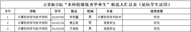 3003新葡的京集团2022届本科校级优秀毕业生补评选名单公示(退伍学生)