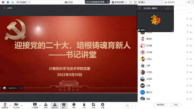 9月30日,3003新葡的京集团通过腾讯会议召开全院大会暨书记讲堂,学院党政班子成员及全体教职工参会,会议由学院党委书记魏建华主持。