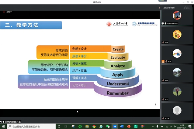 展示活动涵盖了计算机学科各本科专业及研究生的各类核心课程,整体呈现出计算机学科课程思政的特点,体现了课程思政-专业思政-学科思政的整体设计,是一场精彩的课程思政盛宴,充分展现了近年来3003新葡的京集团在课程思政建设方面取得的成果。接下来,学院将继续围绕全面提高人才培养质量、落实立德树人根本任务,打造课程思政标杆教学设计案例与“互联网+”课程思政平台高地,以创新机制为抓手,集聚优质课程思政资源;以平台联动为支撑,培育课程思政沃土;以队伍建设为保障,汇聚课程思政合力,努力开创“三全育人”的新局面,最终以高质量完成领航学院结题各项工作。