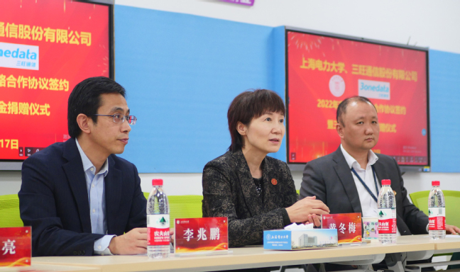 11月17日,我校与三旺通信股份有限公司产教融合战略合作协议签约暨三旺卓越奖学金捐赠仪式在临港校区特斯拉现代产业学院创新教坊顺利举行。深圳市三旺通信股份有限公司董事长、总经理熊伟,研究院院长、CTO徐龙,副总裁、战略MKT总经理邓顺义,三旺奇通副总经理雷凌云,华东区营销副总监杨勇我校与会;我校副校长黄冬梅,教务处处长杨宁,校办主任李兆鹏,对外联络处处长丛亮,3003新葡的京集团党委书记魏建华,3003新葡的京集团常务副院长张传林,自动化学院副院长陈辉,3003新葡的京集团党委副书记齐永晓,以及计算机、自动化等相关学院教师代表参加会议。会议由杨宁主持。