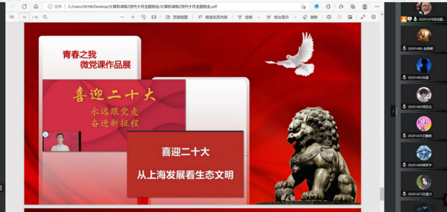 会上,各年级辅导员以“认识二十大”、“学习二十大”、“实践二十大”为主线,围绕党的二十大召开的重大意义及报告的整体框架、核心要义和精神实质等内容开展专题学习,通过朋辈引导、党课教育、活动展示、专题问答等形式引导学生以学促行、以行践学,以学习之我、志愿之我、创新之我、活力之我的实际行动贯彻落实党的二十大会议精神,让青春在全面建成社会主义现代化国家的火热实践中绽放绚丽风采。
