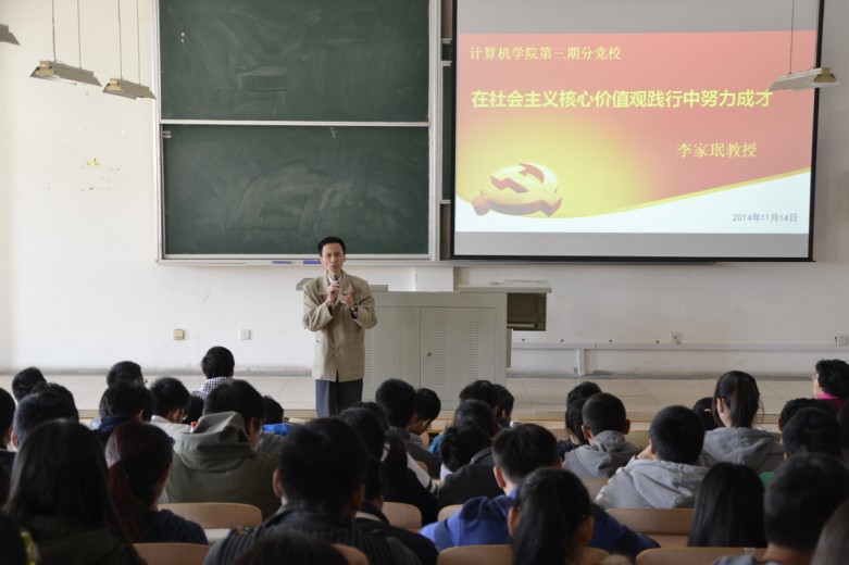 李家珉教授为新葡的京官网入党积极分子和团学成员作核心价值观主题教育