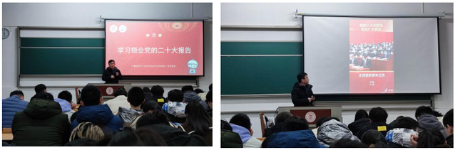 党的二十大深刻阐释了新时代坚持和发展中国特色社会主义的一系列重大理论和实践问题,描绘了全面建成社会主义现代化国家、全面推进中华民族伟大复兴的宏伟蓝图,也对当代青年提出了新要求。在新学期的首日教育活动中,各年级辅导员以大会主题为切入口,由浅入深、以点带面,组织学生学习领会党的二十大报告贯穿全文十五个部分的主要内容。新时代新征程呼唤中国青年善做善成。习主席在党的二十大开幕式寄语广大青年:“青年强则国家强”,通过视频学习习近平总书记重要讲话精神,辅导员引导学生感悟体会习近平总书记对广大青年的寄语,激励学生立志做有理想、敢担当、能吃苦、肯奋斗的新时代好青年。