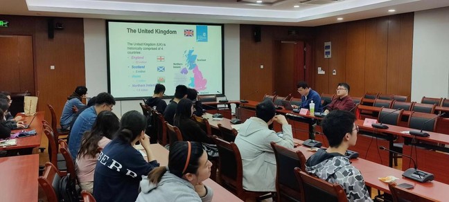首先,齐永晓对王广珍老师、李倩老师和徐嘉辰学长的到来表示欢迎,感谢他们对学院留学工作的大力支持,希望同学们能够认真聆听、主动交流,了解清楚学校的海外学习项目有哪些以及如何进行项目申请;学习自主留学申请如何提前早做准备;希望交流会能够帮助大家进一步规划海外学习、助力同学们成长成才。