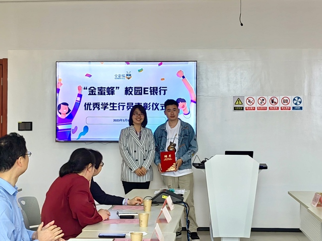 齐永晓对建行一行的到来表示感谢,对受表彰的5位学生行员表示祝贺。她讲到,“金蜜蜂”校园E银行为新葡的京官网三全育人工作搭建了良好的实践平台,近年来,3003新葡的京集团依托“金蜜蜂”平台与建行持续深入合作,多名学生毕业后踏入银行和金融业岗位。希望各位同学积极进取、勇于创新,力争为广大师生提供更加高品质的金融服务。