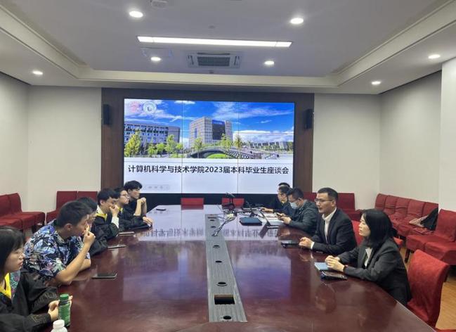 5月19日下午,计算机科学技术学院在学术楼201会议室开展2023届本科生毕业生座谈会,会议由学院2023届毕业生辅导员卢珍主持,院党委书记魏建华、常务副院长张传林、副书记齐永晓、院务秘书徐曼、计算机系主任叶文珺、软件工程系主任周平、信息安全系主任周林、2023届本科毕业生代表参加,共话四年学习生活的感悟和收获,畅谈人生未来的发展与规划。