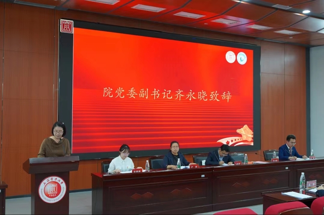 齐永晓代表学院党委致词,她高度评价了新葡的京官网学生组织在活动举办、阵地打造、社会实践、科技创新、组织建设等方面取得的丰硕成果,并指出今后工作中的努力方向,她寄语广大青年:第一,坚定理想信念,做新时代的有为青年;第二,强化修身养德,做新时代的向上青年;第三,勇于担当尽责,做新时代的奉献青年,她对新葡的京官网新一届学生会主席团寄予厚望,希望他们能够响应习近平总书记的号召,做到“不做学生官,要做青年友”,深入分析新形势下学生组织面临的挑战和机遇,把学生会建设成为传播主旋律、弘扬正能量的学生组织。