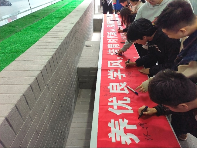 活动伊始,学院开展了一场庄重的学术道德签字活动,倡导杜绝一切学术不端行为,致力于打造诚实、透明和可信的学术环境,同学们热情参与,在印有“涵养优良学风,培育时代新人,弘扬科学家精神”横幅上签字承诺,象征着他们对学术诚信的坚定承诺。