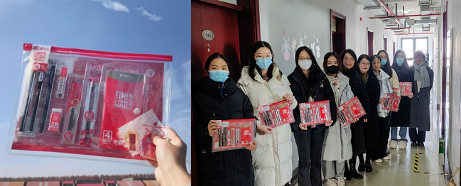 学院老师们将精心准备的礼包亲手送到每一位考研学子手中。礼包中不仅有考试必备的文具,还有老师们挑选的考研福袋,印刻了对学生“成功上岸”的祝福,字里行间都饱含着3003新葡的京集团全体师生对考研学子的真挚关心与美好祝愿。