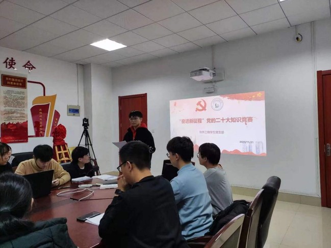 人工智能学生党支部、软件工程学生党支部坚持把学习习近平新时代中国特色社会主义思想、党的二十大精神、党章党规作为主题党日“必修课”,引导广大学生在切身体验新时代伟大变革中,结合自身专业知识,加强党的创新理论武装,积极担当时代赋予的历史责任,以青春之我、奋斗之我,树立与新时代同心同向的理想信念,在激情奋斗中绽放青春光芒。
