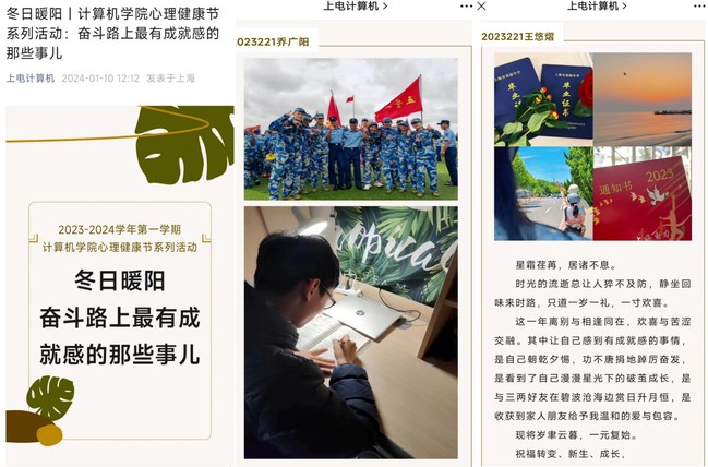 心理健康节期间,学院同时举办心理赋能之心理海报制作、心理赋能之“奋斗路上最有成就感的那些事儿”专题推送等活动。在本次心理海报设计大赛中,同学们结合自己的成长经历绘制了属于自己的心灵故事,在精心设计海报的过程中,同学们学会了探索自我,展示了自尊自信、积极向上的阳光心态。学院面向全体本研同学开展了“奋斗路上最有成就感的那些事儿”专题活动,鼓励同学们回忆成长过程中的高光时刻,以图文形式进行记录,总结助力成功的积极心理品质,提高自尊自信,面向未来挑战,做好接力奋斗的心理准备。