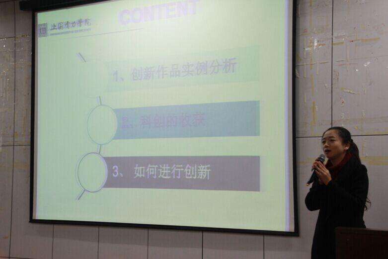 视频回顾了科技月活动的精彩场景。赵铮老师为创新创意标志语大赛获奖的同学进行颁奖,同时鼓励同学们积极参与更多的创新创意活动,将科创与生活有机结合起来。刘大明老师为同学们讲述了申报科创的流程、时间节点和方式,提倡处在互联网时代的大学生,特别是计算机专业的学生,多用互联网思维去思考、去科创,也可以就当下很热的“物联网”、“树莓派”、“无人机”等方面进行科技创新。随后徐嘉辰同学和邱依强同学分别向在座的同学简要介绍了新葡的京官网机器人实验室的旅游机器人和教育机器人,并现场展示了教育机器人的擂台赛。朱瑞老师分享了她的科创经历,用视频的方式演示了六轮小车适应各种不同类型路面的机器人、可以跳舞的机器人。她告诉同学们,科创不仅可以丰富专业知识,还可以提高动手能力,学会展示自己作品的方法,学会表达自己的思想、锻炼临场应变的能力。最后,副院长毕忠勤老师致闭幕词,他就“如何创新”这个问题,提出了了解创新设计、确定设计主题、培养创新思维三个方面的要求。