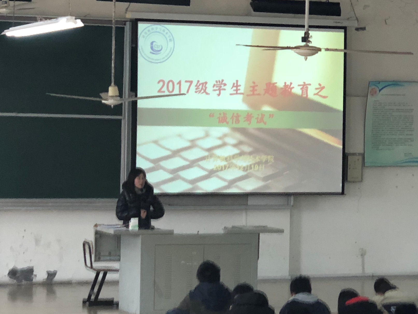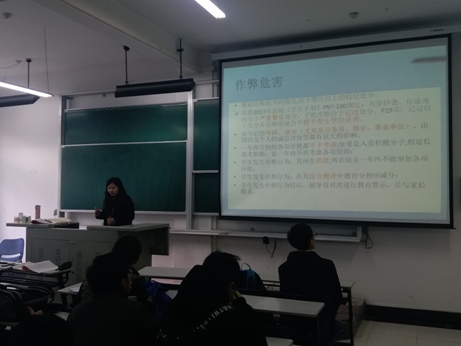 2017年12月19日,3003新葡的京集团诚信考试动员大会由各辅导员分别召开。全体辅导员根据《学生手册》对于诚信考试的要求,从公民道德和学校制度两个方面进行了讲解,对于考试违纪处分的新规定进行了着重提醒,对全体本科生做了期末考风考纪动员。良好的学风、考风是学院教学工作、人才培养、学风建设的重要环节,希望大家诚信考试,坚守底线,认真备考,用实际行动实现自己的梦想。此外,辅导员发放了《诚信考试承诺书》,同学们在认真阅读后慎重签下了自己的名字。