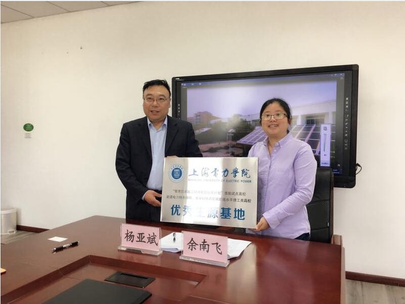 余南飞代表上海电力学院感谢遵义航高的热情接待,并播放了上海电力学院宣传片,在观影中进一步加深了航高校领导层面对上电的全面认识。随后她详细说明了本次上电进行全国招生宣传工作的情况,并就合作的目标、形式、举措等与遵义航高进一步交流,顺利达成合作意向签订了“上海电力学院优秀生源基地”协议书,双方还举行了正式的授牌仪式。