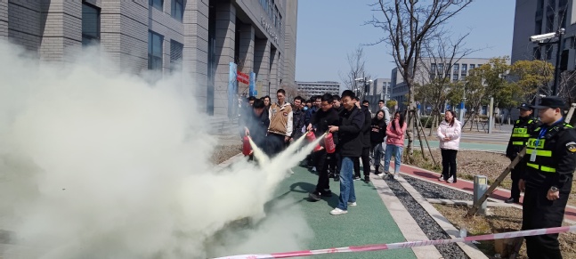 灭火教学环节,学校消防专员结合典型火灾事故,详细讲解了火灾的危害性,现场为师生们传授火场如何逃生等消防基础常识,实地演示了灭火器操作使用方法,并现场邀请师生参与使用灭火器。