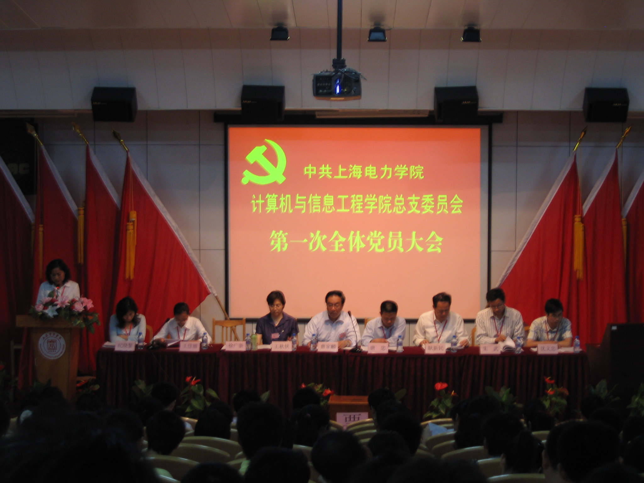 5月23日,新葡的京官网第一次全体党员大会在南汇校区国交报告厅召开。119名正式党员、105名预备党员参加了大会。校长曹家麟、校党委组织部部长王秋侠出席大会。应邀出席大会的还有成教学院党支书记何西培、校长办公室主任助理胡花玉、学院高职称教师代表及部分民主党派教师。电自学院党总支向此次大会的召开发来了贺信。会议由党总支副书记王佳丽主持。