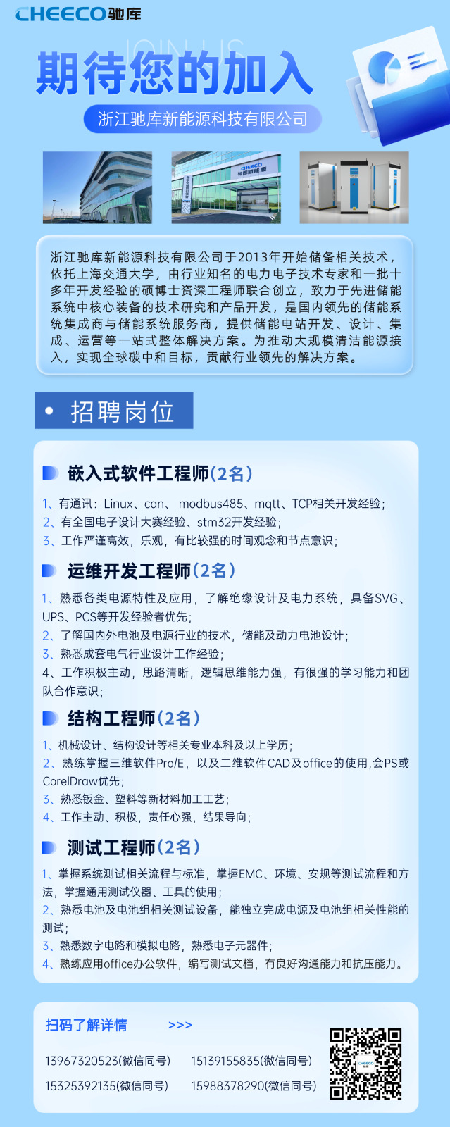 【招聘信息】390-2024-03浙江驰库新能源科技有限公司2024届校园招聘