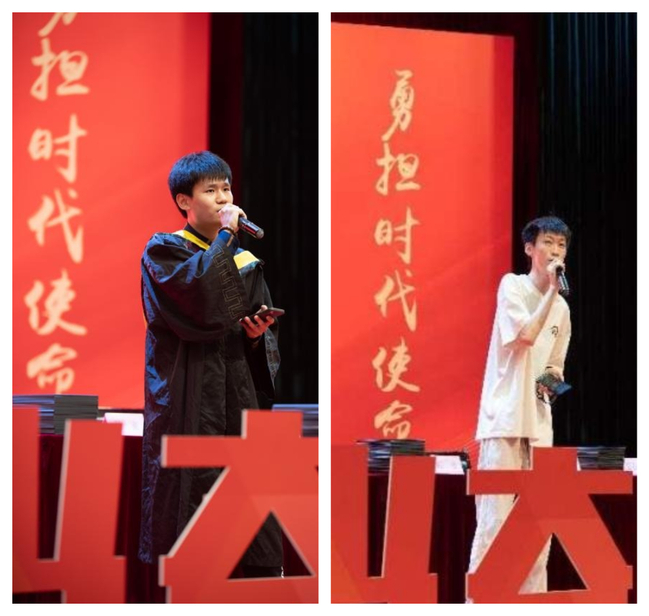 毕业典礼开始前,计算机科学与技术专业(卓越培养计划)沈百川同学和软件工程专业肖王亮同学以扣人心弦的歌声,向老师们表达感谢,向母校献礼。