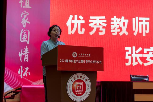 学院优秀教师代表张安勤向全体毕业生表达了真诚的祝福,祝愿毕业生一帆风顺、前程似锦。她回顾了与学生们共同度过的美好时光,分享了学生们在学习和生活中取得的点滴进步,并鼓励毕业生们保持学习的热情,不断追求进步。