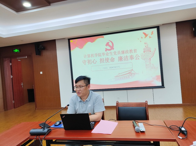 学院党风廉政监督员任祥宝围绕“学纪、知纪、明纪、守纪”做廉政教育。用“身边事”警示教育“身边人”, 嘱托毕业生党员在在工作岗位上,要明党纪熟规章,守牢底线意识,要永葆改革攻坚的清廉本色,要把正确的道德认知、自觉的道德养成、积极的道德实践紧密结合起来,以高度的政治自觉做到学纪、知纪、明纪、守纪,把遵规守纪刻印在心,内化为行。