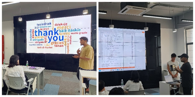 在每个团队的展示环节之后,教师组与学生们进行了深入的互动交流。张传林、徐曼、范自柱、栗风永等老师对每个项目进行了详细的点评,对课题的原理、实现细节、应用价值等方面进行了深入探讨,指出了课题完善的方向。他们从行业发展、学术动向、实际需求和技术应用前景等多个角度提出了问题,例如:机械臂的避障能力和应用场景,如何处理不规则物体的抓取,多目标识别的实现方式,自动驾驶模型在高速行驶时的不同表现,项目的识别率和精度问题,梯度下降的优化程度等。这些问题激发了学生们对课题相关技术发展方向及其可能遇到的问题的深入思考。