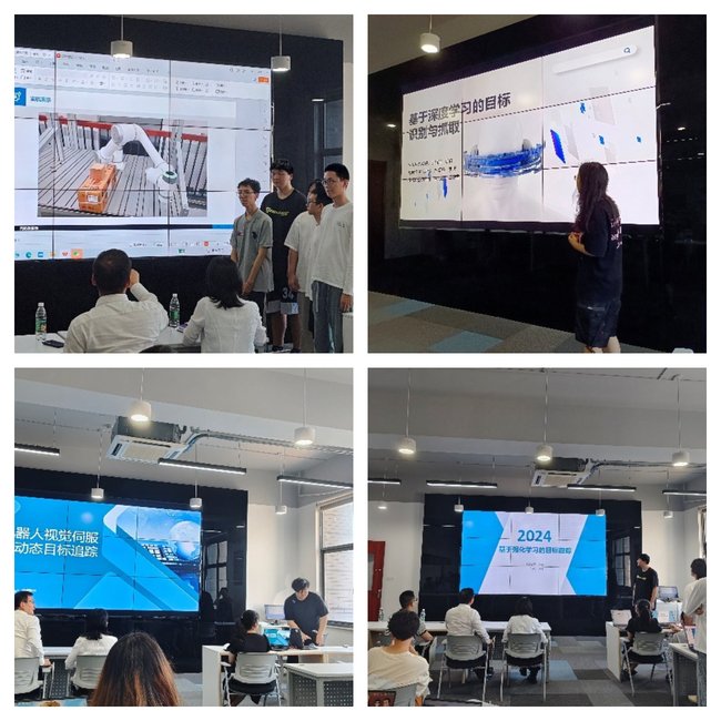 余青蓉团队展示了“基于深度学习的目标识别与抓取”项目,详细介绍了如何利用深度学习算法实现精确的目标识别与抓取,展示了智能制造和工业自动化的一种解决方案。傅豪杰团队的“基于强化学习的目标跟踪”项目展示了他们在强化学习领域的实验成果,展示了其在复杂环境中的应用潜力。