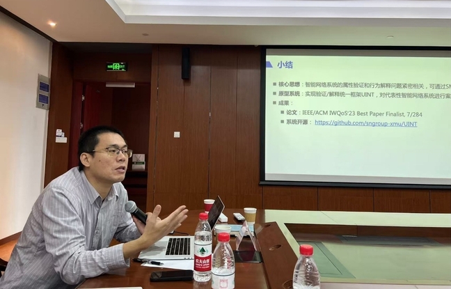 向乔教授以“AI4Networking:智能网络系统的行为逻辑与创新”为主题进行了精彩介绍。他首先分析了当前智能网络技术的发展趋势,强调了人工智能在推动网络智能化方面的关键作用。接着,向乔教授深入探讨了智能网络中的信息传播与交互机制,解析了这些机制如何影响网络性能和用户体验。在此基础上,他详尽剖析了多个实际案例,展示了智能网络系统在不同场景下的创新应用。最后向乔教授还介绍了其团队用大模型技术进行网络系统代码复现工作的最新进展。