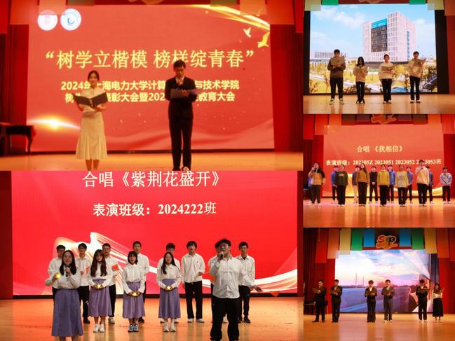 表彰大会分为“潜心求知,不忘初心”和“勇于追梦,砥砺前行”两个篇章,表彰学院2023-2024学年集体和个人荣誉,用榜样的力量鼓舞同学们向更高的目标前进。大会上民乐合奏《楚颂》、独唱《不用去猜》、合唱《紫荆花盛开》、《我相信》、舞蹈《舞动青春》彰显同学们的青春活力与满怀着的激情。诗朗诵《青春扬帆正当时,争做时代追梦人》、《写给未来的你》、《向着光,一路奔跑》表达计科学子对未来的展望憧憬。《明天会更好》更是表达同学们对美好明天的期待。
