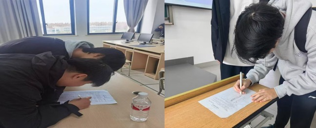 班会中,辅导员还组织了各年级学生以线下亲笔签名的形式签署《3003新葡的京集团学生诚信考试承诺书》,作出严守考纪、诚信考试的郑重承诺,全方位多矩阵引导学生树立诚信观念、增强校纪校规意识。互动讨论环节中,同学们积极发言,提出需要建议与想法,对诚信教育和校级校规有了更深刻的认识,纷纷表示将在即将到来的期末考试中严格遵守校规校纪,做诚实守信、积极向上的大学生。