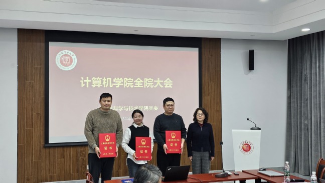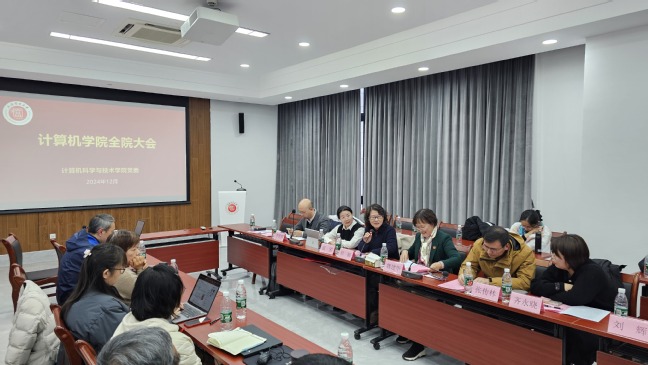2024年12月24日,计算机学院在临港校区学术楼305会议室召开了全院大会。校党委副书记仰颐,学院党委书记魏建华、院长温蜜、常务副院长张传林、党委副书记齐永晓、副院长李晋国以及全体教职工出席了此次会议。会议由学院党委书记魏建华主持。