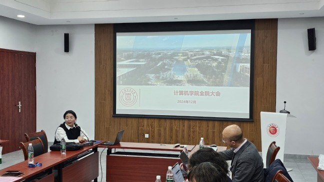 院长温蜜立足计算机行业发展的新形势与新目标,详细介绍了学院在团队建设、科研成果、研究生培养、国际交流以及师资队伍建设等方面取得的成果,对学院2024年取得的成绩给予了充分肯定,对做出突出贡献的老师给予了肯定;也指出了学院在发展中存在的薄弱问题,并结合校党委“六新”理念要求,提出了新的奋斗目标和系列工作举措。