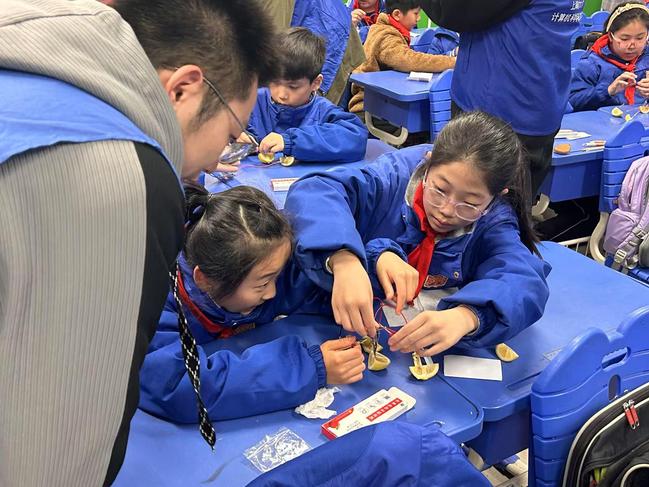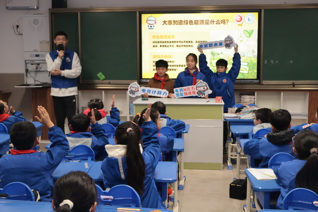 课堂中,志愿者结合学院专业特色,以绿色能源、电力特色为主题,通过生动讲解和互动实验,并通过生动的案例展示了清洁能源在日常生活中的应用,为小学生科普风能、光能等绿色能源的相关内容,向小学生普及电的知识,加深对电力知识的理解。随后,小学生在志愿者的帮助下,用柠檬、铜片和锌片制作了简易水果电池。当小灯泡在同学们共同协作中点亮的那一刻,教室里响起了阵阵欢呼声,“电力小课堂”通过寓教于乐的方式,让孩子们在快乐中学习,在学习中成长。